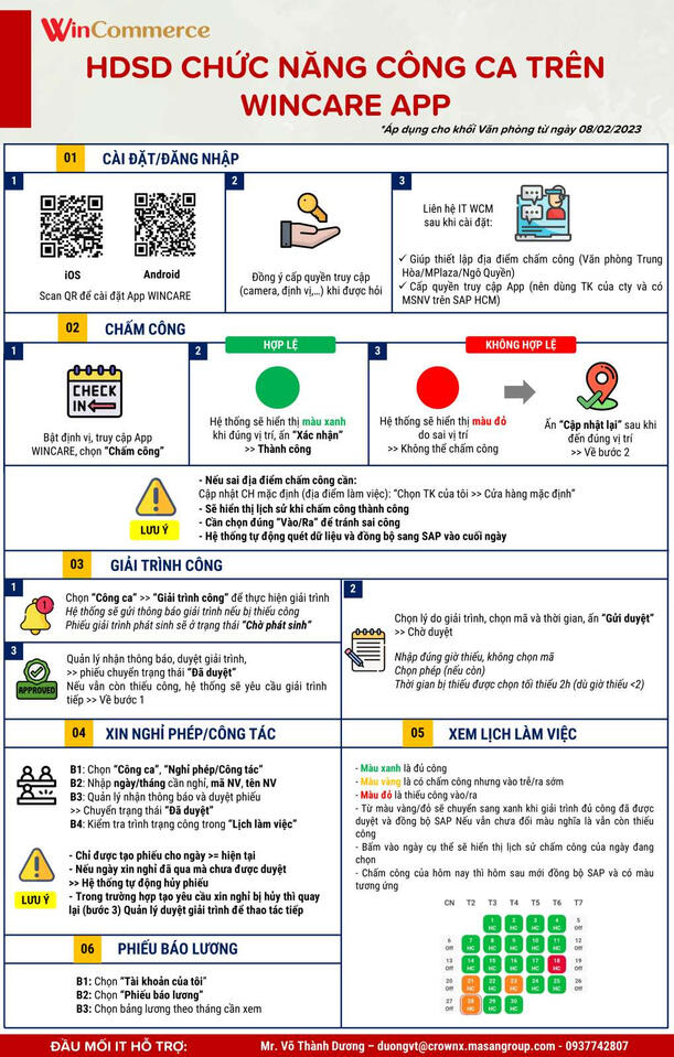 Hỗ trợ công tác: Cấp thẻ nhân viên, thẻ gửi xe, đồng phục, các công tác hành chính khi nhân viên đi công tác...- Bộ phận tuyển dụng: tuyendung@winmart.masangroup.com2. Phần mềm làm việc